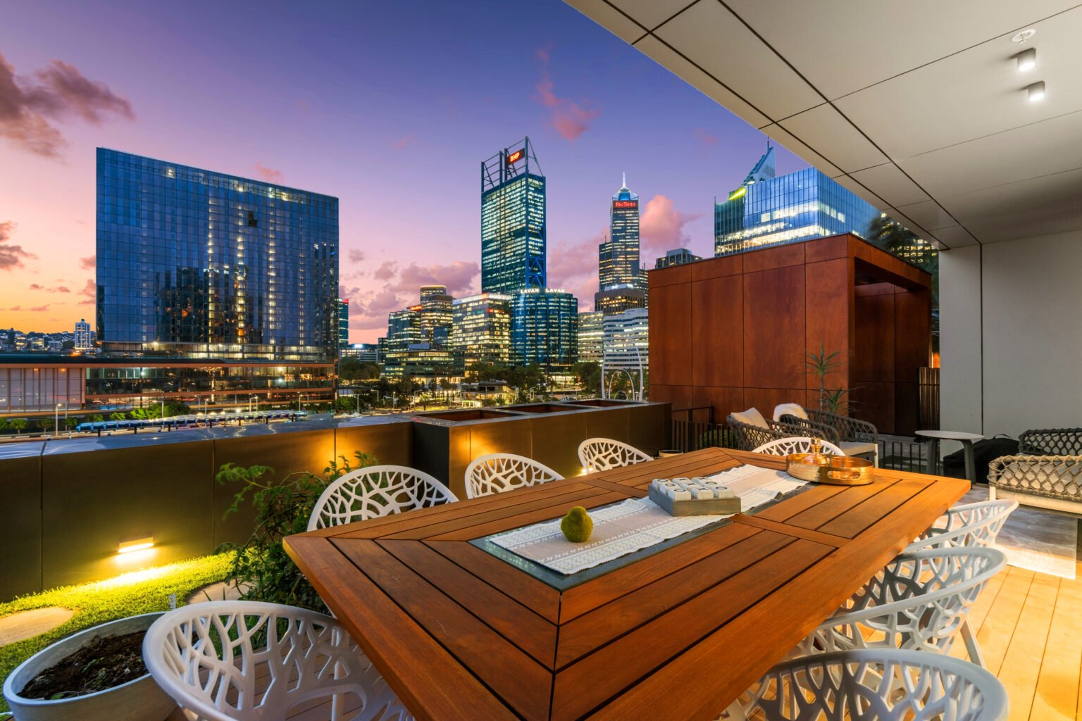Imagine enjoying your remarkable fifth floor natural grass lawn in the heart of Perth—with sweeping views of the Swan River, Kings Park, South Perth, Elizabeth Quay and Perth’s city skyline. Two floor-to-ceiling retractable glass….